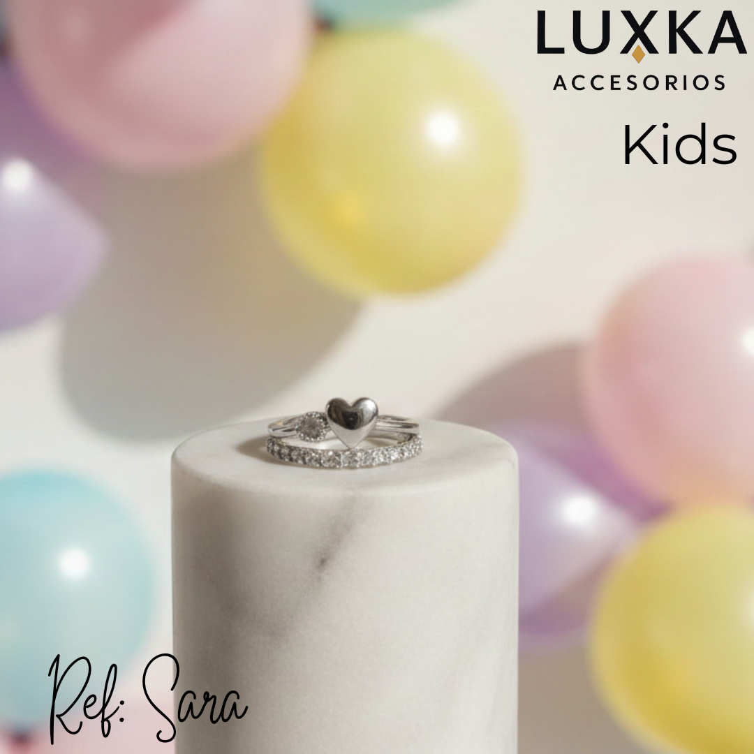 Romántico, elegante y lleno de brillo ✨. El set de anillos corazón plateado de Luxka Accesorios combina dos piezas únicas: un anillo con detalle de corazón y otro con incrustaciones de cristales brillantes que reflejan la luz con sutileza y elegancia.