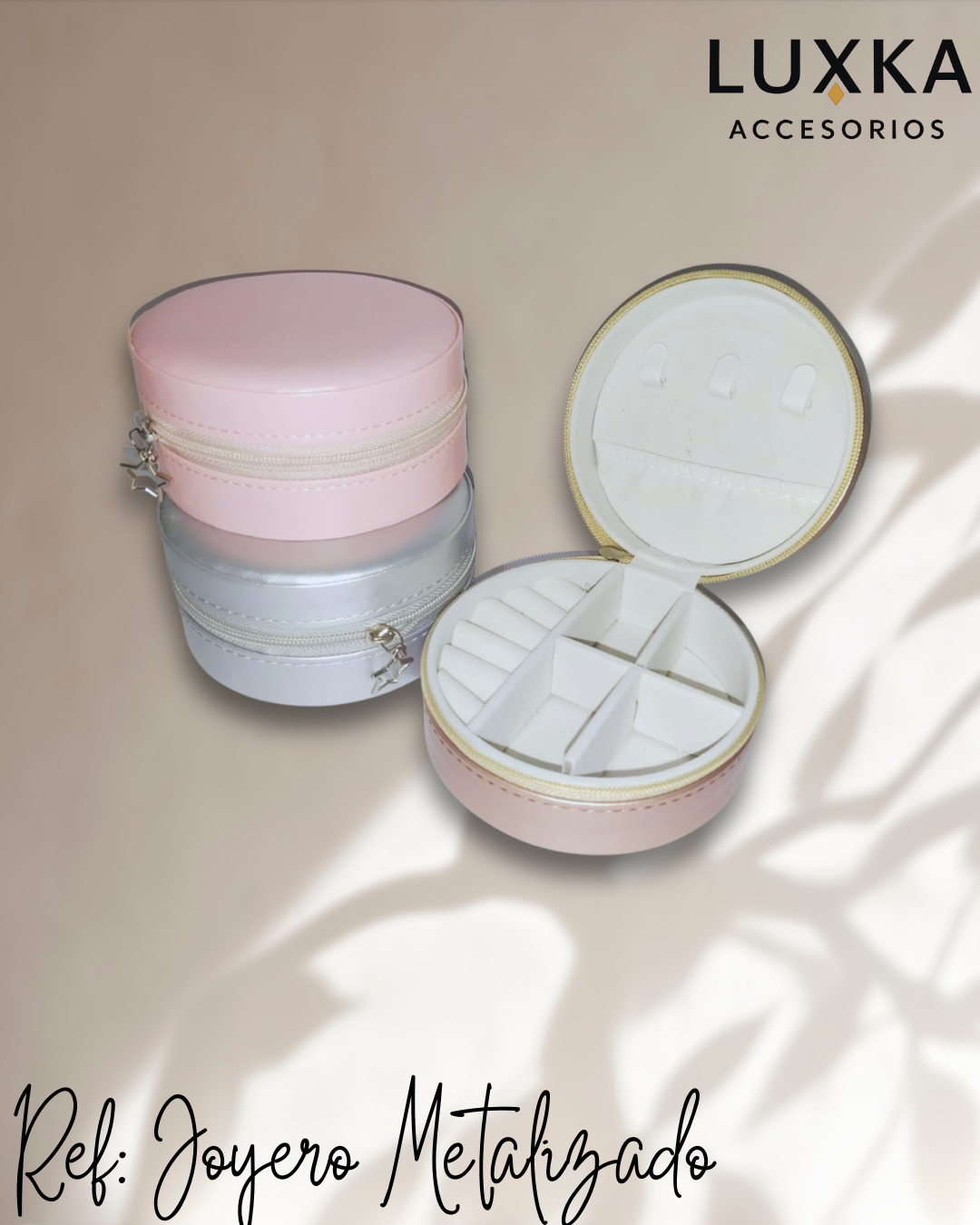 Mantén tus accesorios siempre seguros y organizados con este joyero redondo compacto, diseñado para mujeres modernas que buscan practicidad sin perder estilo. Disponible en colores delicados y sofisticados, es ideal para guardar aretes, anillos, cadenas y pulseras, tanto en casa como en viajes.