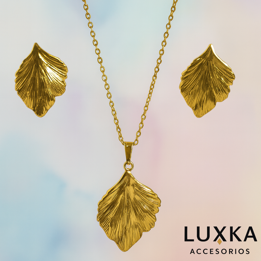 Refleja elegancia y distinción con el Set Dorado Luxka Accesorios, compuesto por una cadena y aretes con un diseño circular texturizado que capta la luz desde cualquier ángulo. Un complemento perfecto para mujeres que buscan un toque sofisticado y moderno en su estilo diario.